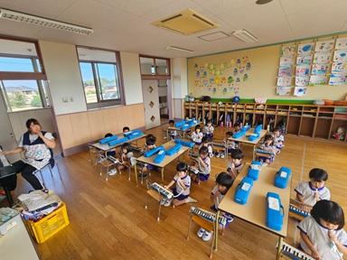おはしのおけいこ、メロディオン、給食です。