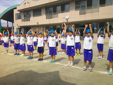 運動会にむけて、園庭でリズムの練習をしました。みんな頑張っています。