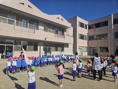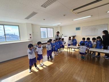 年中さんが、年長さんが行っている、クラブ活動の様子を見学しに行きました。(マーチングクラブ、プレイクラブ、スポーツクラブです。)