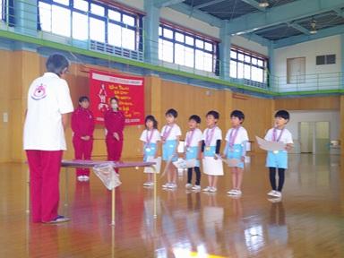 試合後、メダルや賞状を受け取り、みんな嬉しそうにしていました。