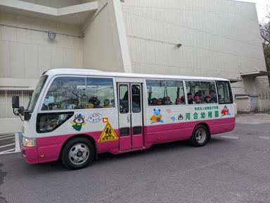 年中さんがリハーサルが終わり、バスで園に戻るところです。