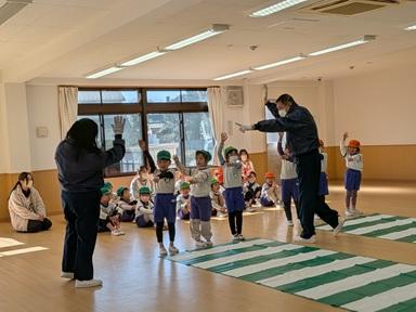 さいたま市役所、市民生活安全課交通教育指導員さんのお話をしっかりきいて、左右、信号確認して、右手をあげて横断歩道シートの上を渡りました。