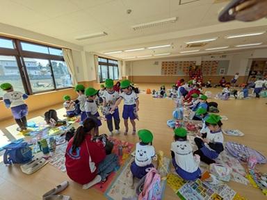 鉄道博物館の車両を楽しく見学して、幼稚園に戻ってから園内スポーツ広場で、お弁当を食べ、楽しくおやつ交換をしたり、各教室でお楽しみ会を行いました。
